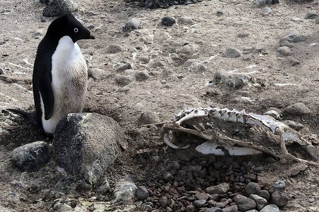 발걸음이 조심스럽다. 남극 케이프할렛 아델리펭귄 번식지 주변 사체 때문이다. 둥지 위로 새 생명이 태어나는 한편, 땅 속은 죽은 펭귄들이 가득하다.