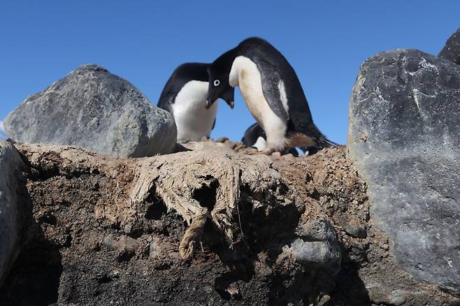펭귄 사체가 수백~수천년 전 이 땅에서 살았던 존재일 수 있다는 이야기다. 펭귄 둥지 아래로 드러난 지층에는 아델리펭귄들이 모아둔 작은 돌들이 쌓여 있다. 지층 하나당 최소 수백년이다.