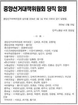 '하루에 커피를 스무 잔 마신다'는 오(재영) 실장은 이 시간에도 커피를 들이키며 잠을 쫓고 있었다. 전농과 민주노총 상근자 파견 문제, 공약개발단의 공약 발표 계획 등 하루 일정을 점검하는 것으로 1시간여의 기조회의가 끝나자 중앙당사에는 60여명의 상근자로 이미 북적대고 있었다."