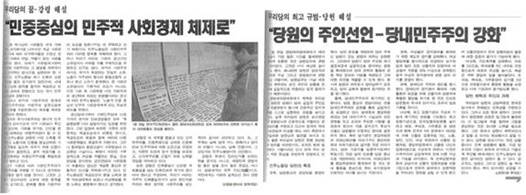 2001년 7월 27일 <진보정치> 53호 2면의 위와 아래에 노회찬과 이재영 두 사람의 글이 올라온다.