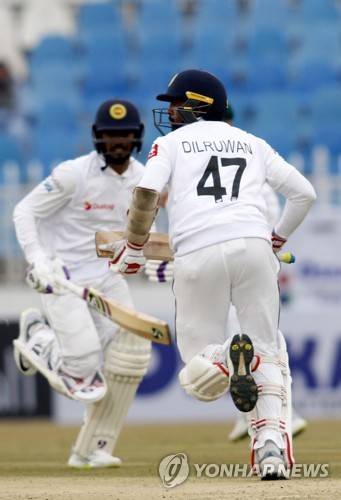 epa08065467 Sri Lanka's Niroshan Dickwella runs between the wickets during the second day of the first Test cricket match between Pakistan and Sri Lanka at the Rawalpindi Cricket Stadium in Rawalpindi, Pakistan, 12 December 2019. Sri Lanka and Pakistan are playing two Test matches, one in Rawalpindi, that has been started from 11 December and the second one in Karachi from 19 December. EPA/SOHAIL SHAHZAD
