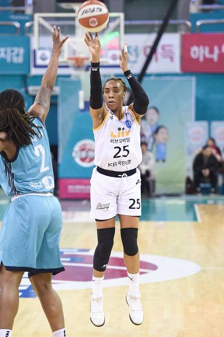 또한, 강아정은 김소담의 패스를 컷인 득점으로 연결했다. 하나은행 강계리의 뱅크슛이 나오자 쏜튼이 골밑 득점을 올렸다. 이후 하나은행은 이하은의 골밑 득점이 나왔으나 추격에 어려움을 겪었다. KB는 김민정과 쏜튼의 3점슛으로 승부를 갈랐다. 3쿼터는 KB의 67-47 우세.