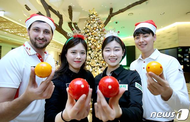 (서울=뉴스1) = 15일 오후 고양시의 한 호텔에서 PBA투어 6차대회 SK렌트카 PBA-LPBA 챔피언십 대회에 앞서 마르티네스, 서한솔, 이미래, 신정주가 포토콜을 가졌다. SK렌트카 PBA-LPBA 챔피언십 대회는 16일부터 20일 까지 열린다. (PBA 투어 제공)2019.12.15/뉴스1