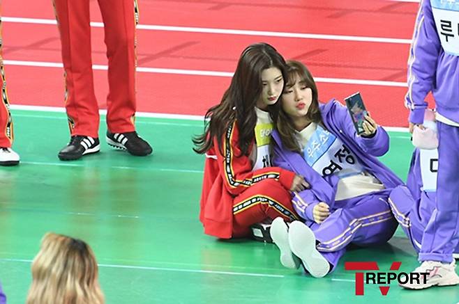 [TV리포트 = 문수지 기자] 걸그룹 '다이아'의 정채연, '우주소녀'의 유연정이 16일 오전 인천광역시 남동구 수산동 인천남동체육관에서 열린 '2020 설특집 아이돌스타 선수권대회'에서 셀카를 찍고 있다.