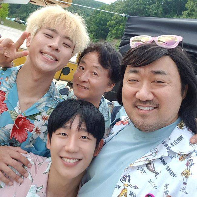 공개된 사진 속에는 영화 '시동' 촬영장에서 마동석과 박정민, 정해인, 김종수 등이 환한 미소를 지으며 셀카를 찍고 있는 모습이 담겨 있다. 파격적인 단발머리로 변신한 마동석부터 금발 박정민까지 배우들은 각자 독특한 캐릭터를 예고하며 영화에 대한 기대감을 높이고 있다.