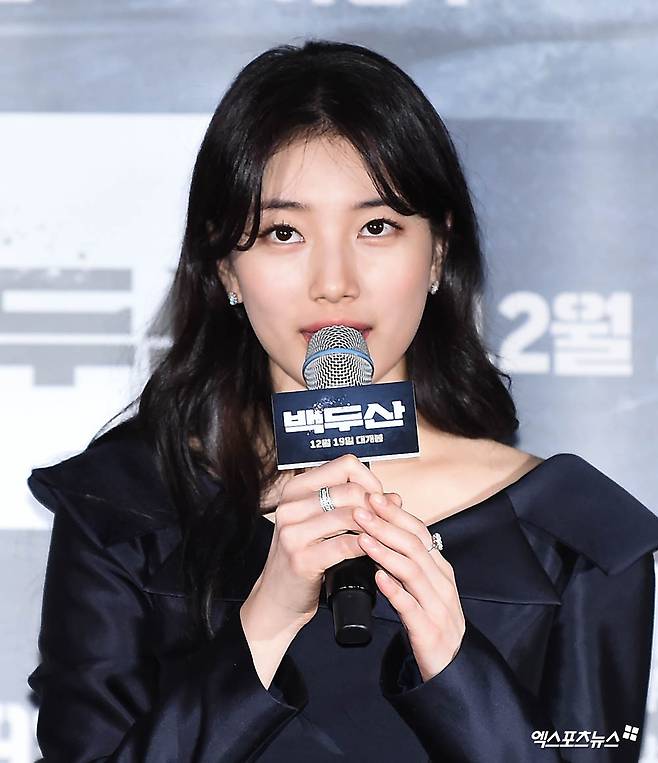 [엑스포츠뉴스 윤다희 기자] 18일 오후 서울 한강로3가 CGV 용산아이파크몰에서 열린 영화 ‘백두산’ 언론시사회에 참석한 배우 수지(배수지)가 포토타임을 갖고 있다.