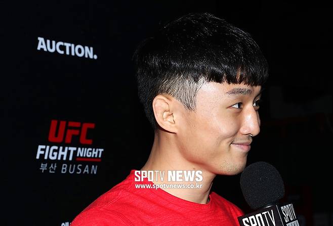 [스포티비뉴스=부산, 곽혜미 기자] UFC 부산 공식 계체량이 20일 오후 부산 사직체육관에서 열렸다. 백스테이지에서 최두호가 인터뷰를 하고 있다.
