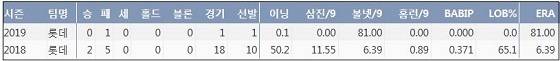 | ▲ 롯데 윤성빈 프로 통산 주요 기록 (출처: 야구기록실 KBReport.com) |