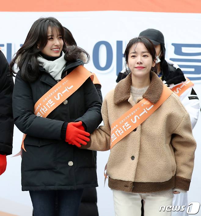 (서울=뉴스1) 김진환 기자 = 배우 한효주와 한지민(오른쪽)이 21일 오후 서울 강남역 인근 광장에서 열린 JTS 모금행사에 참석해 포즈를 취하고 있다. 2019.12.21/뉴스1
