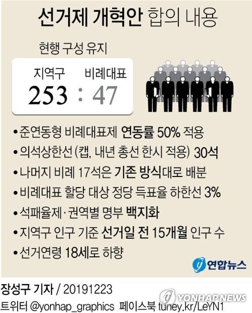 지역구와 비례대표 의석을 각각 225석과 75석으로 설정한 원안에서 각각 27석·28석 증감시키면서 선거제 개혁에 따른 새 제도 설계를 위한 '기초'가 훼손됐다는 분석이다.