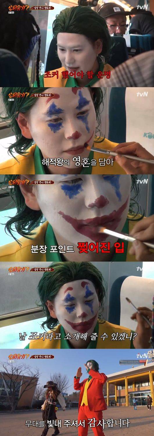 27일에 방송된 tvN '신서유기7'에서는 밀양에서 깐나 영화제가 열린 가운데 규현이 조커로 분장해 눈길을 사로 잡았다.