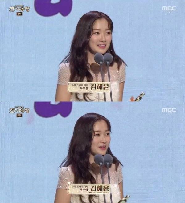 이날 김혜윤은 우수상 여자 부문 수상자로 무대 위에 올랐다. 이날 김혜윤은 같은 작품으로 신인상을 수상한 바 있다.