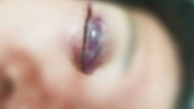 70대 할머니의 눈이 시퍼렇게 멍들고 얼굴은 퉁퉁 부었습니다. 눈은 제대로 뜰 수조차 없습니다.
