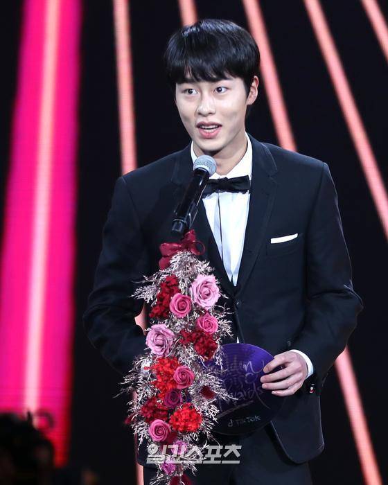 이재욱이 4일 오후 서울 구로구 고척스카이돔에서 열린 ’제34회 2020골든디스크 with 틱톡‘ 디지털음원부문 시상식에서 시상자로 나와 수상자를 발표하고 있다.