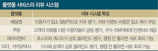 업체와 고객을 연결해주는 각종 플랫폼 서비스에는 어김없이 리뷰 게시판이 있다. 업체를 처음 이용하는 고객으로서는 이전 고객이 남긴 평점과 후기가 선택에 큰 영향을 미칠 수밖에 없다. 고객이 객관적으로만 평가한다면 다른 고객에게 정보를 제공하고 업체의 품질 향상 동기를 부여한다는 점에서 순기능도 많다.