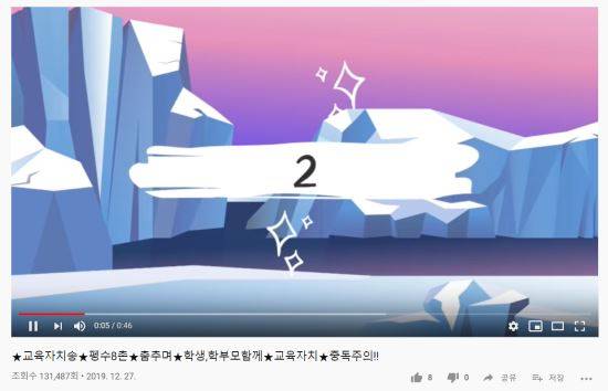 교육감협의회 유튜브 채널 ‘전국교육’은 지난달 27일 교육자치를 주장하는 노래에 맞춰 펭귄이 춤을 추는 동영상을 게재했다. 모두 함께 교육자치를 만들어 나가자는 내용이었다. 동영상 분량은 47초다. 동영상 조회 수는 6일 오후 5시 기준 13만 1487회를 기록했다.