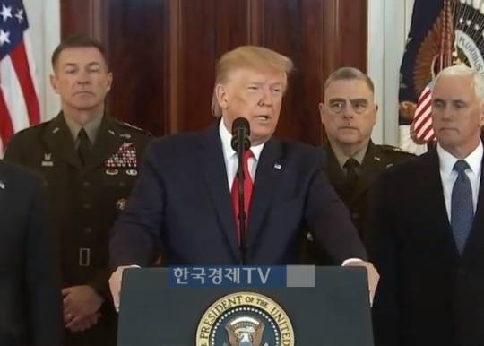 트럼프 미국 대통령은 미국 동부시간 8일 진행한 대국민 연설에서 "지난 밤 이란의 폭격으로 인한 미국인과 이라크인 사상자는 발생하지 않았으며, 기지 피해도 소규모에 그쳤다"고 말했다.