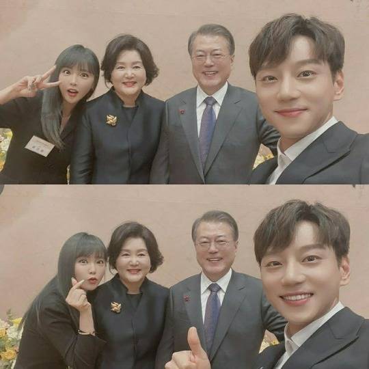 가수 홍진영과 황치열이 문재인 대통령 내외와 만났다.