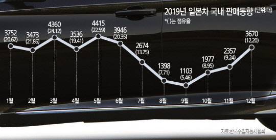 [디지털타임스 김양혁 기자] 일본차 업계가 작년 불매운동 파고를 넘고 두 자릿수 점유율을 지키는 데 성공했다.