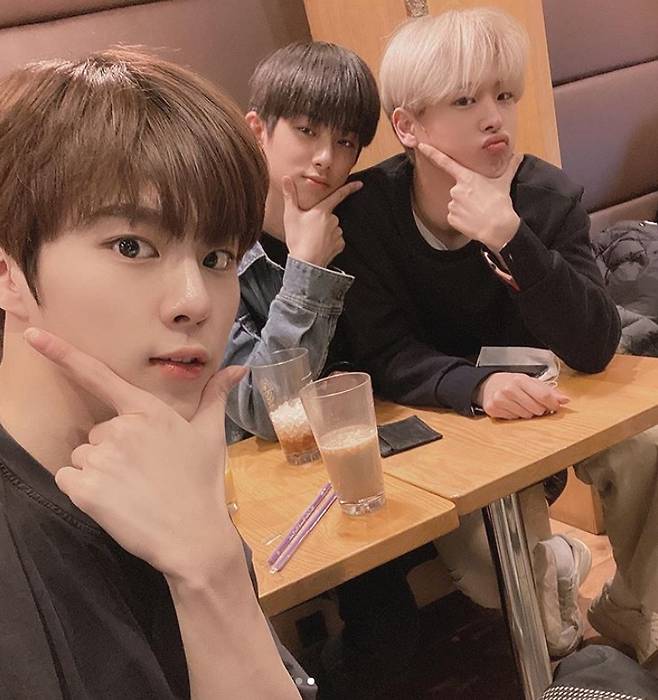 사진 속에는 최병찬, 김민규와 셀카 사진을 찍는 김우석의 모습이 담겼다. 세 사람은 카메라를 향해 미소짓고 있다. 김우석의 똘망똘망한 눈빛, 최병찬과 김민규의 시크한 분위기가 시선을 사로잡는다.