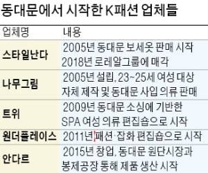 동대문시장은 성공한 K패션 브랜드의 요람 역할도 하고 있다. 동대문의 빠른 생산 공정을 통해 유행에 맞는 제품을 제작해 선보이며 성장을 거듭해 해외에서도 관심을 받고 있다.