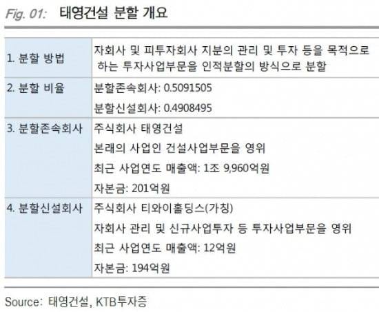 분할 상장을 밝힌 태영건설에 대해 금융투자업계에서 긍정적인 분석이 나오고 있다.