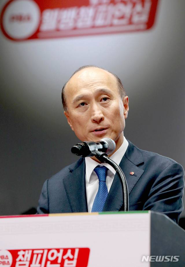 [서울=뉴시스] 박민석 기자 = 김대웅 웰컴저축은행 대표가 23일 오후 경기 고양시의 한 호텔에서 열린 PBA투어 7차전 '웰컴저축은행 웰뱅 PBA-LPBA 챔피언십 대회' 개막식에 참석해 인사말을 하고 있다. (사진=PGA투어 제공) 2020.01.23.
