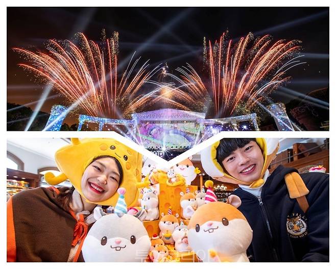 온 가족이 함께 에버랜드에서 '설캉스'..인증샷·전통놀이·불꽃쇼
