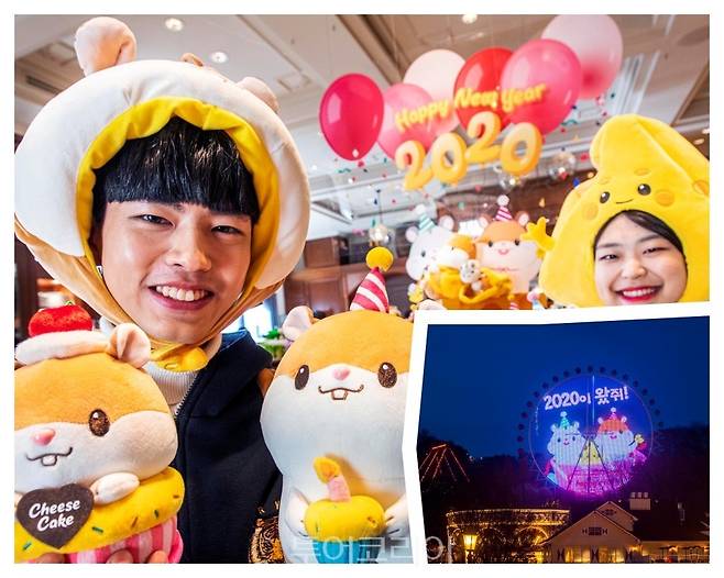 우선 '엣쥐(에버랜드+쥐) 캐릭터'와 함께 하는 다양한 인증샷 이벤트가 펼쳐진다. 설날 연휴 기간 매일 밤, 지름 40m크기의 초대형 스크린을 보유한 우주관람차에서는 귀여운 엣쥐 캐릭터들의 모습이 담긴 특별 영상이 상영되되고, 이 엣쥐 캐릭터 영상을 사진 찍어 이벤트 해시태그와 함께 인스타그램에 올리면 추첨을 통해 2020년 한정판 엣쥐 상품도 선물로 증정한다. 그랜드엠포리엄, 메모리얼샵 등 에버랜드 상품점에도 2020년 엣쥐 포토존이 마련돼 있어 인증샷 이벤트에 참여할 수 있다.