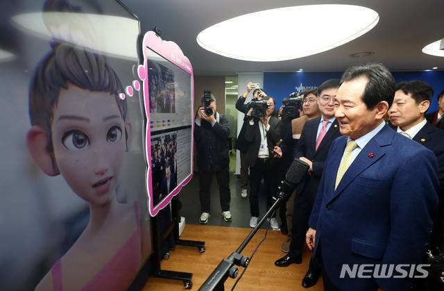 AI 가상상담원 '샌디'와 대화하는 정세균 총리