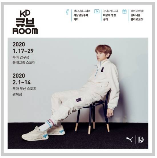 지난 1일 푸마 SNS에는 "어서와, 부산은 처음이지? KD 큐브룸 부산에서도 만나 보세요! #PUMA #PUMAxKD #KangDaniel #강다니엘 #푸마 #RS_X3 #RS_X_CUBE #RS_X큐브 #KDCUBEROOM #KD큐브룸"이라는 글과 함께 영상이 게재됐다.