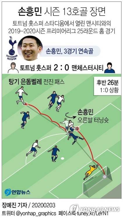 [그래픽] 손흥민 시즌 13호골 장면