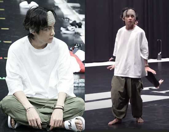 방탄소년단 뷔, 연습 중에도 발산된 패션센스 '헤어밴드에 힙한 카고바지'
