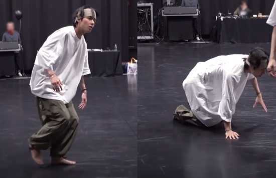 멤버들은 거울을 통해 자신의 안무에 집중하며 연습에 매진했다. 뷔 역시 마찬가지. 맨발로 무대에 올라야 하기 때문에 그 어느 때보다 동선에 신경썼다.