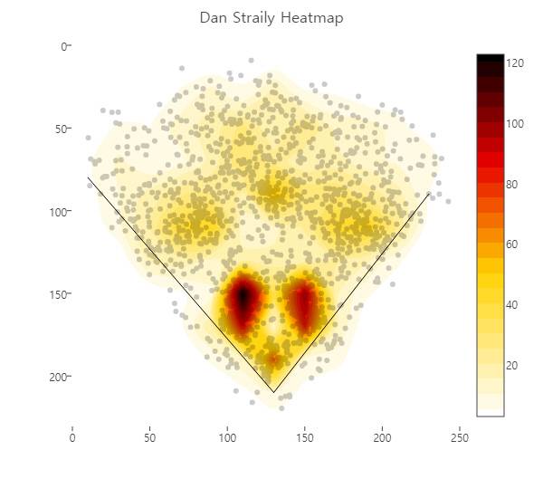 ▲ 스트레일리의 허용타구 히트맵