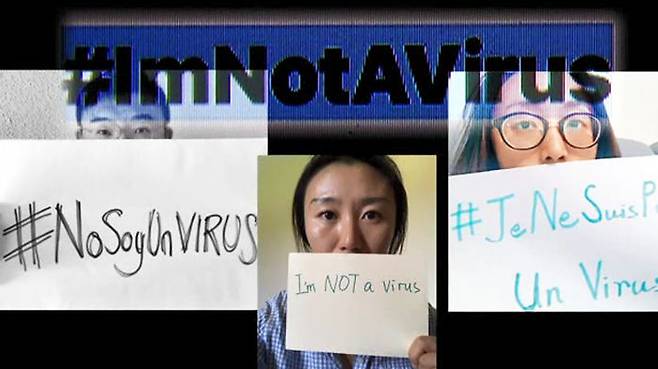 유럽에 있는 동양인들은 '나는 바이러스가 아니다'라고 쓴 해시 태그 운동으로 이런 차별에 맞서고 있습니다.