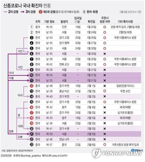 국내 확진환자는 23명으로 이 가운데 1명(2번 환자)은 전날 퇴원했고, 1명(1번 환자)은 퇴원 예정이다. 지난달 20일 확진된 1번 환자(35세 여성, 중국인)는 최근 바이러스 검사에서 2회 이상 음성으로 확인됐다.