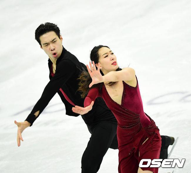 아이스댄스 프리댄스 프로그램에 출전한 중국 홍 첸, 주오밍 선 커플이 연기를 펼치고 있다. /jpnews@osen.co.kr