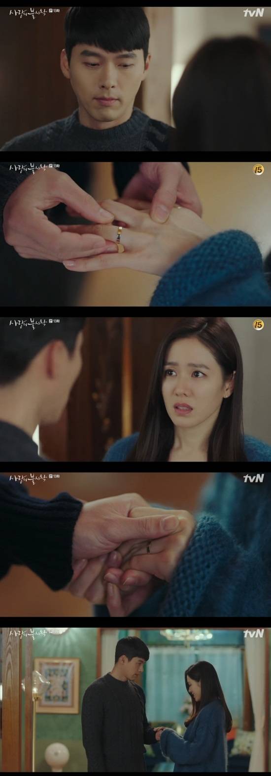 윤세리는 “고마워요. 내가 본 반지 중에 제일 예뻐. 안 뺄 거야. 평생”이라고 감격했고, 리정혁이 “빼도 되는데”라고 말하자 윤세리는 “무슨 일이 있어도 당신 기억할 거니까”라고 약속했다. (사진=tvN ‘사랑의 불시착’ 캡처)
