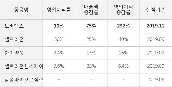 같은 기간 노바렉스 주가는 4.2% 상승했다.