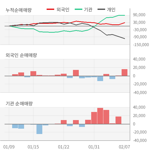 이 기간 동안 외국인은 1047주를 순매수했고 개인은 -9.3만주를 순매도했다.