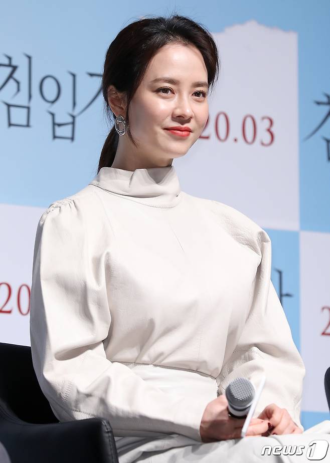 (서울=뉴스1) 김진환 기자 = 배우 송지효가 12일 오전 서울 강남구 CGV압구정에서 열린 영화 ‘침입자’ 제작보고회에 참석해 포즈를 취하고 있다.