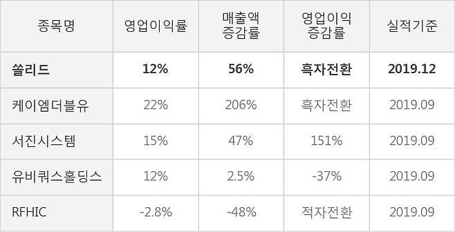 [잠정실적]쏠리드, 작년 4Q 영업이익 108억원.. 전년동기比 큰 폭 증가 (연결)