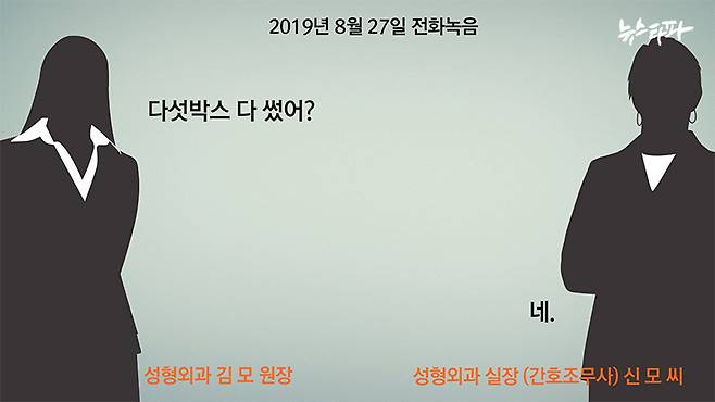 (신 씨) 어제는 놀라서 그렇게 됐지. 거짓말하려고 한 건 아닌데. - A성형외과 원장 김OO 씨와 실장(간호조무사) 신OO 씨 대화(2019.8.27)