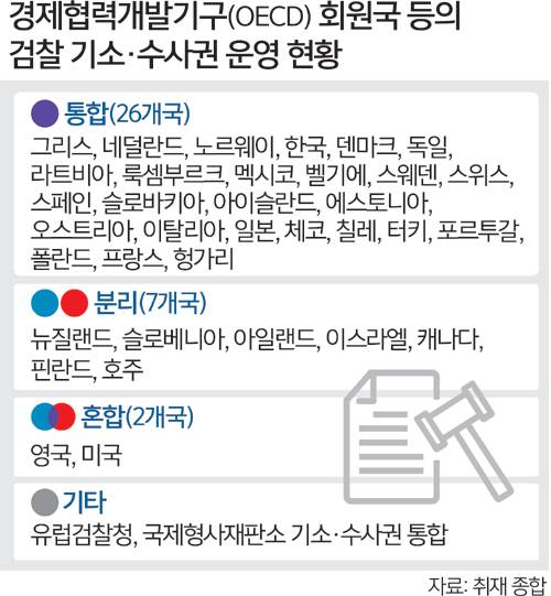 해외 검사 수사·기소권 '진실과 오해' / OECD 국가 4곳 중 3곳 檢 수사권 부여 / 28개국서 경찰에 대한 수사지휘권 보장 / 英·美는 분리 알려졌지만 구분 어려워 / 연방·연합국 체제인 탓 지역마다 달라