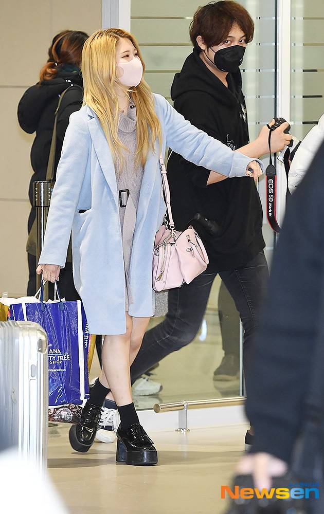 걸그룹 네이처 하루가 2월 16일 오후 해외 일정을 마치고 인천광역시 중구 운서동 인천국제공항을 통해 입국하고 있다.