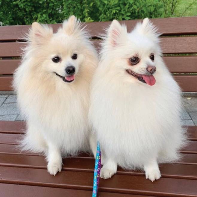 가을이는 동네에 버려져 며칠을 떠돌던 걸 엄마가 제보를 받고 데려왔다. 폼피츠였는데 털이 짧게 다듬어져 있고 팔다리와 귀에 염색이 돼 있는 걸로 보아 누가 봐도 집에서 예쁨받고 자란 아이였던 것 같다. 사람 손길을 많이 탄 아이라 그런지 집에 데려오자마자 1년간 먼저 살았던 봄이를 제치고 소파에 늠름하게 착석하는 모습이 깜찍했다. 그때까지 봄이는 애견 방석에도 제대로 앉아본 적 없는 아이였다. 사실 봄이를 먼저 데려오고 나서 가을이가 왔기에 망정이지, 가을이와 봄이가 온 순서가 달랐다면 우리가 힘들었을지도 모른다. 가을이처럼 애교 많은 개만 보다가 목석 같은 봄이가 왔다면 우리가 이만큼 봄이를 예뻐할 수 있었을까? 봄이 입장에서는 가을이가 싫었을 수도 있지만 봄이가 워낙 착하고 순한 성격이어서 무탈하게 적응한 것 같다. 천생 애교쟁이인 가을이를 따라 우리한테 놀아달라고 조르거나 가까이 와서 툭툭 건드리는 등, 봄이도 장족의 발전을 이뤘다.