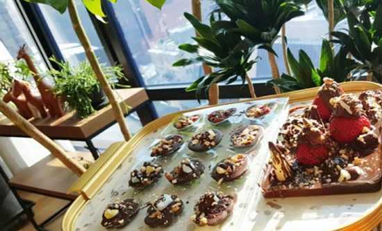 서현이와 세은이는 딸기와 견과류를 사용해 초콜릿을 만들었다.