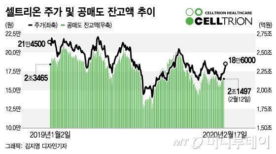 실적 기대감은 높지만 현재 셀트리온의 주가는 17만~19만원 보합권에 머물러 있다. 기대감이 이미 주가에 반영된 영향도 있지만 무엇보다 높은 공매도 비율이 주가의 발목을 잡고 있다는 분석이다.
