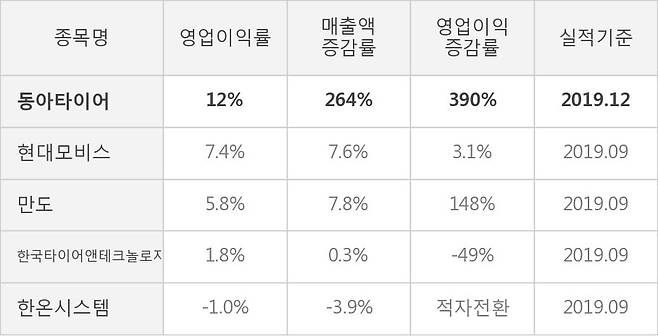 [잠정실적]동아타이어, 작년 4Q 영업이익 급증 180억원.. 전년동기比 390%↑ (개별)